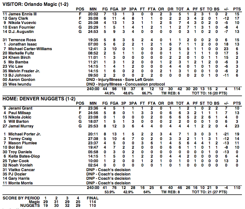 Également de retour, Markelle Fultz a lui semblé en quête de rythme alors qu’Evan Fournier, encore maladroit, a compensé en cherchant ses camarades (4 points à 1/5 au tir, 7 passes).