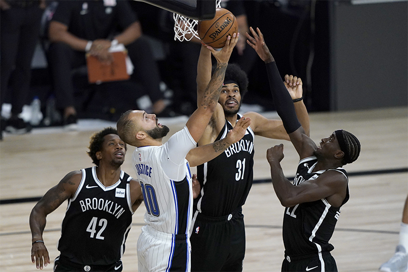 Alors que Jonathan Isaac est le seul joueur debout durant l’hymne, avec son maillot à la place des t-shirts “Black Lives Matter” portés par ses camarades, c’est Brooklyn qui prend le meilleur départ dans la rencontre.