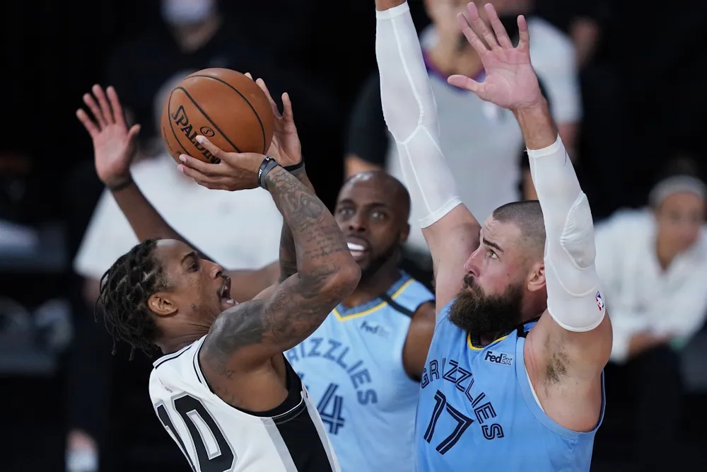 Sauf que les Grizzlies, par l'inévitable Valanciunas, signent un 7-0 pour repasser devant. Le Lituanien est trop facile lorsqu'il est servi dans le bon timing. Il ne donne même pas l'impression de forcer. Pour lui répondre, San Antonio s'en remet notamment à DeMar DeRozan avec le petit floater dont il a le secret (45-41). Les Spurs maîtrisent moins leur sujet, mais en étouffant Morant, ils empêchent les Grizzlies de développer leu jeu alerte. Et quand ce dernier envoie Brandon Clarke au alley-oop, Derrick White lui répond à 3-points (50-45). Un écart de cinq points que les Spurs conservent jusqu'à la pause (59-54) après une fin de mi-temps hachée par les lancers.