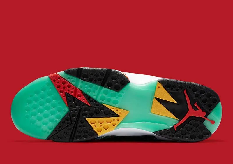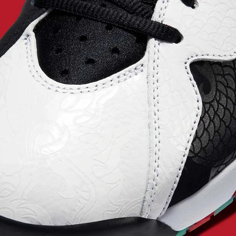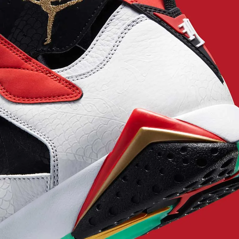 Sur la Air Jordan 7 “Greater China” on retrouve de nombreux clins d'oeils à la culture chinoise. Le motif coloré est superbe. Les touches de rouge et d'or évoquent évidemment le drapeau de la République Populaire.