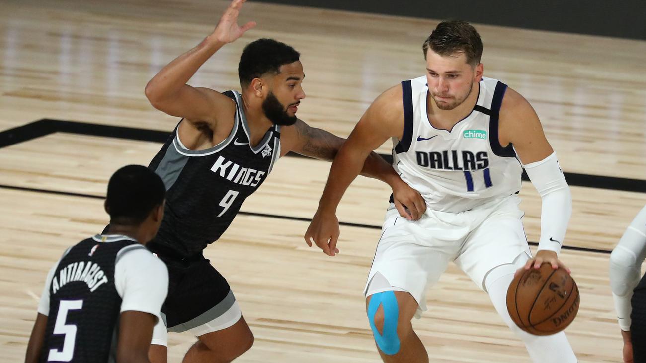 Buddy Hield tente de le calmer en lui plantant un 3-points sur la tête en isolation, mais le Slovène répond avec un « and-one » arraché aux forceps et réplique ensuite au 3-points de Kent Bazemore avec un tir lointain à son tour, maintenant à lui seul les Mavs dans la course à 12 minutes du terme (82-75).