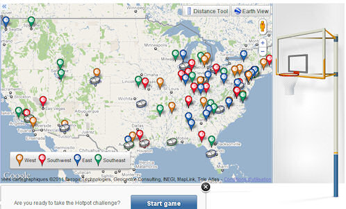 En l’occurrence, il vous propose carrément une visite en 3D des 14 salles dans lesquelles vont se disputer le tournoi NCAA. On peut aussi visiter chaque université qualifiée, et un outil permet, par exemple, de calculer le nombre de kilomètres que va parcourir une équipe pendant le tournoi.