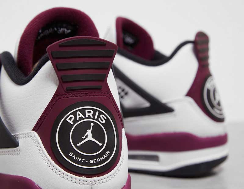 Des images qui confirment une chaussure à la base blanche, complétée par des touches de bordeaux. Si la couleur n’est pas franchement celle du club de Neymar et Kylian Mbappé, le logo est bien là sur le talon. Une étiquette “Paname” rappelle aussi la ville de Paris.