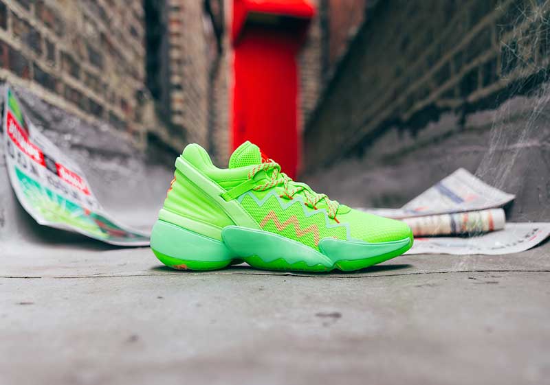 Les premières photos volées de la DON Issue 2 montraient des coloris très sages. Mais c’est bien avec un vert éclatant que la nouvelle signature de Donovan Mitchell va se lancer. Comme pour le premier modèle, Spiderman a les honneurs de la teinte de lancement.