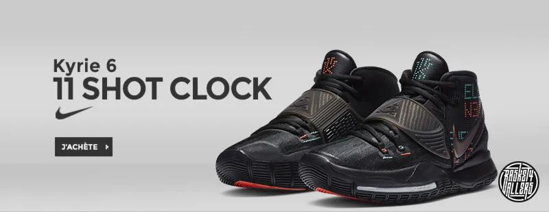 Shoppez maintenant sur Basket4Ballers.com les Nike Kyrie 6 “Eleven Shot Clock” et arborez le numéro fétiche de Kyrie Irving pour ajouter un soupçon de bonne fortune à votre jeu allié aux performances d'amorti et de maintien de la chaussure.
