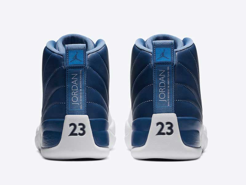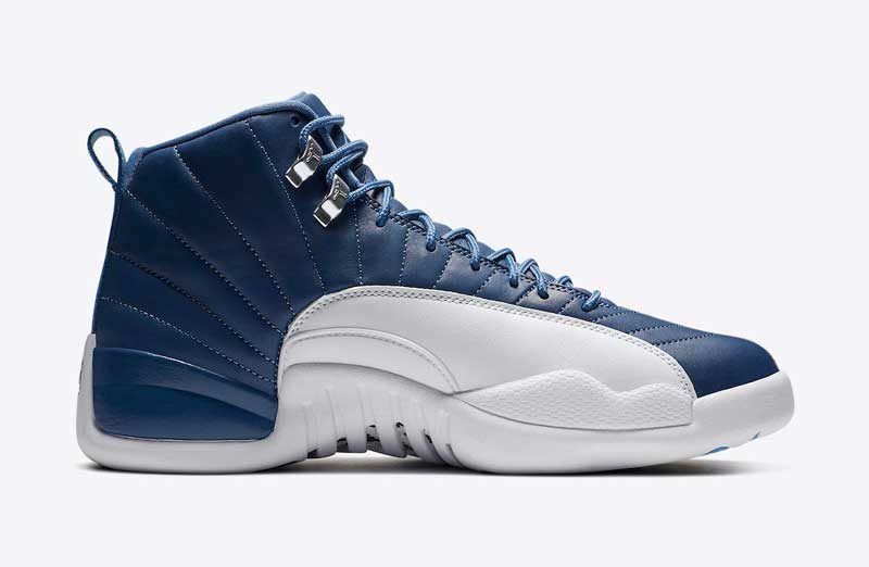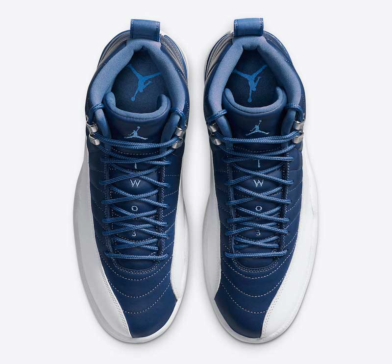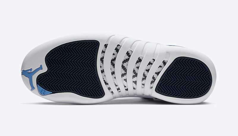 Un joli bleu sombre drapé de blanc, quelques accents ciel qui rappellent North Carolina, et voilà une superbe Air Jordan 12.