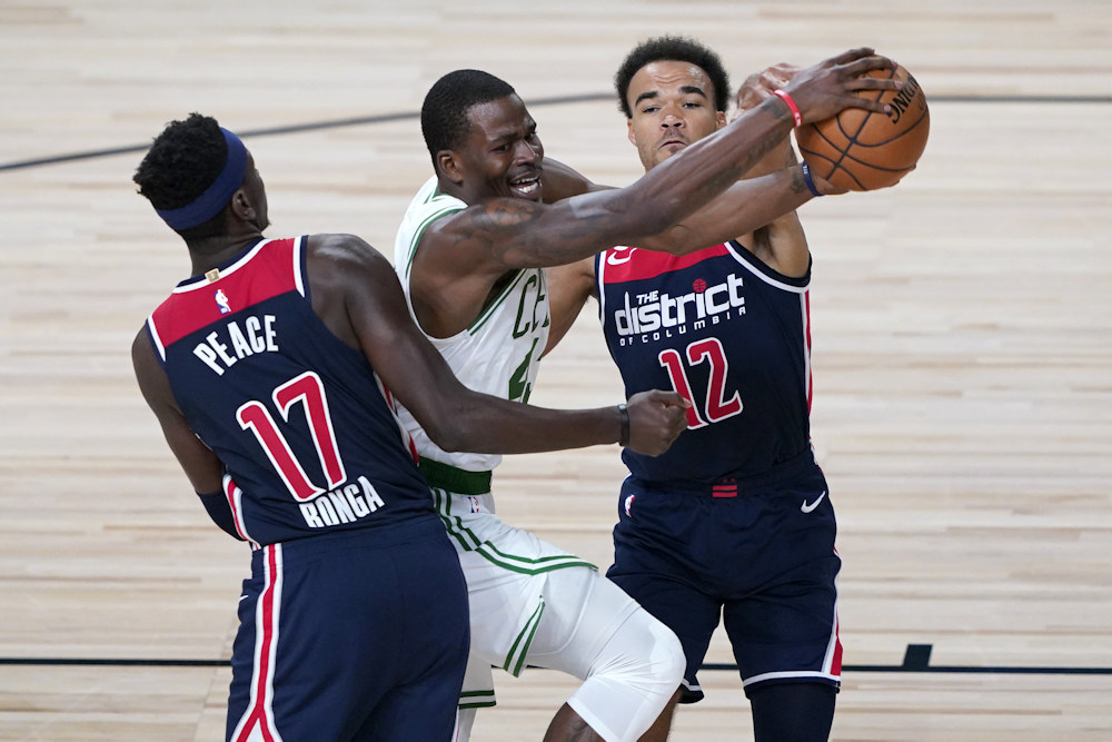 La pause a fait du bien aux troupes de Brad Stevens. Les Celtics redémarrent bien. Washington parvient à réagir avec deux shoots primés. La défense de Boston passe en zone au moment où Tacko Fall entre en jeu. Le géant se signale avec un gros contre mais aussi deux fautes rapides. Globalement, sa présence est intéressante mais c’est toujours trop peu pour les Celtics (78-77).
