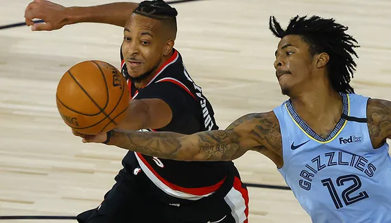 Gary Trent Jr. se montre en défense et à 3 -oints et il permet à son équipe de se rapprocher, à 109-107 à 4 minutes de la fin. C'est alors CJ McCollum qui prend le contrôle du match, avec un 3-points et un stepback face à Ja Morant. Damian Lillard fixe ensuite toute la défense et décale Carmelo Anthony qui délivre à nouveau dans le crunch. Dillon Brooks et Ja Morant marquent à 3-points mais ça ne suffira pas (126-122).