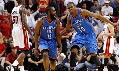 Mais hier soir avec le Thunder, c’est bien la conférence Ouest qui impose sa loi. Porté par Durant (29 points), OKC prend sa revanche contre Miami, et s’impose 96-85. C’est la 5ème victoire d’affilée pour les joueurs de Scott Brooks.