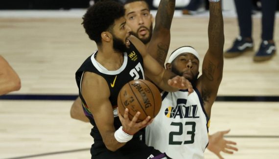 Il continue d’agresser sans cesse la défense adverse pour finir près du cercle ou trouver un coéquipier ouvert. Mais attention, Donovan Mitchell de l’autre côté est aussi capable de marquer des paniers ou de porter son équipe vers la victoire. Les deux joueurs se livrent un nouveau duel de dingues. Quand Jamal Murray marque, Donovan Mitchell lui répond. Ce dernier s’envole d’ailleurs dans les hauteurs de Disney World claquer un énorme dunk sur Michael Porter Jr, mais Jamal Murray lui répond sur l’action suivante (98-98).