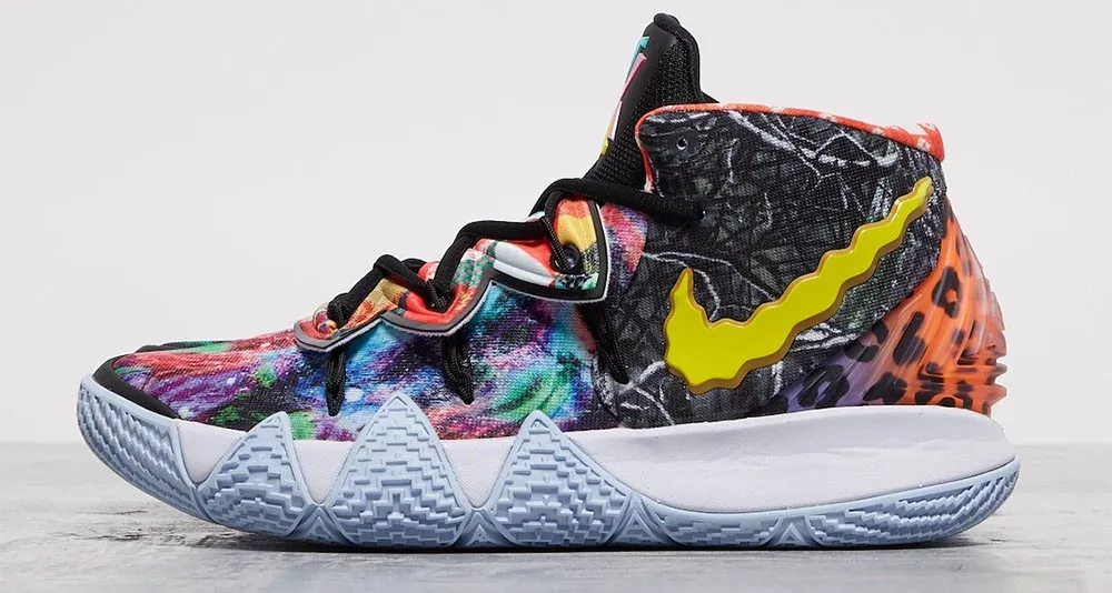 Mélange des Kyrie 4, 5 et 6, la Kyrie S2 Hybrid a fait une entrée discrète sur le marché des chaussures, mais la version “What The” ne passera pas inaperçue ! On y trouve des éléments de plusieurs modèles de la gamme Kyrie, comme Bob l'éponge ou la Confetti. C'est l'esprit des séries “What The” et c'est donc réussi.