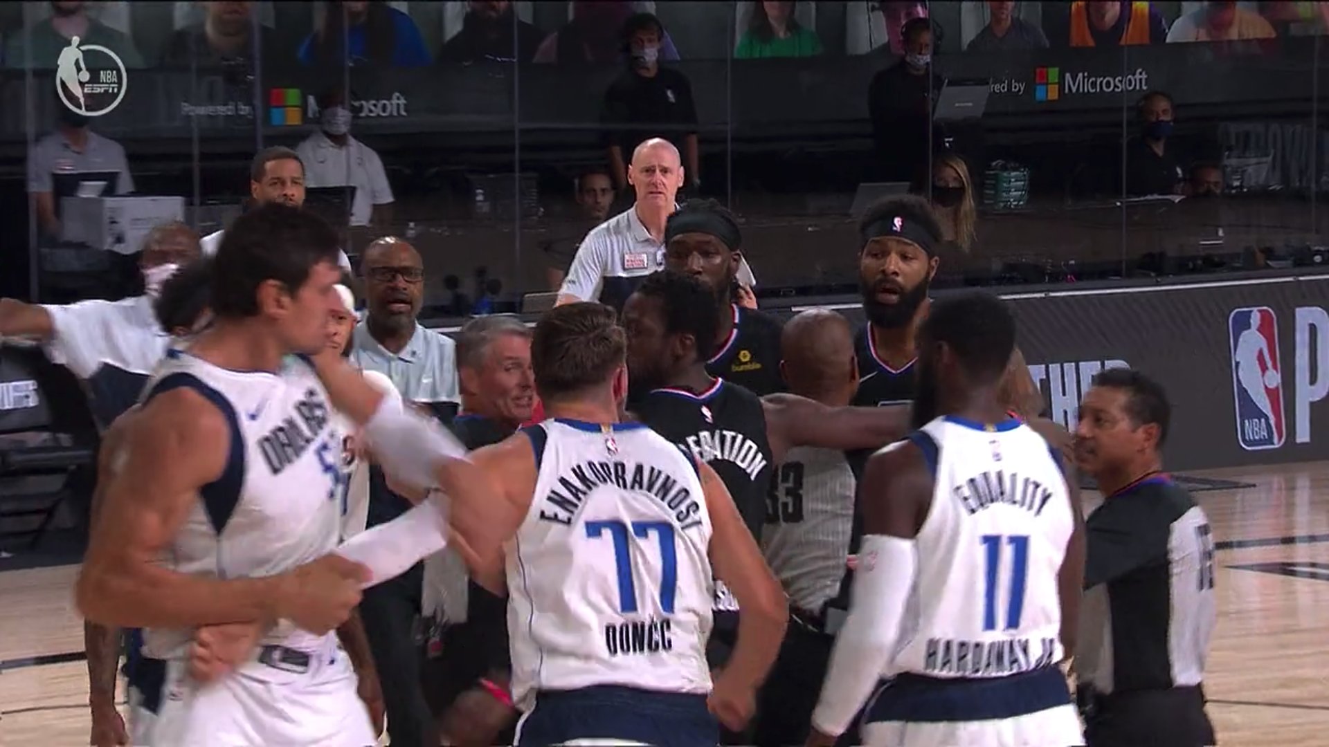 Il a beau dire qu’il n’est pas un sale joueur, et qu’il n’entre pas sur le terrain pour blesser un adversaire, Marcus Morris s’est à nouveau fait remarquer par un sale geste, et c’est à nouveau sur Luka Doncic. Cette fois, l’ailier des Clippers ne lui a pas marché sur le pied, mais il l’a doublement frappé à la tête, puis attrapé au collet pour l’envoyer au sol. Sans surprise, il a écopé d’une Flagrante II et il a été expulsé sur le champ.