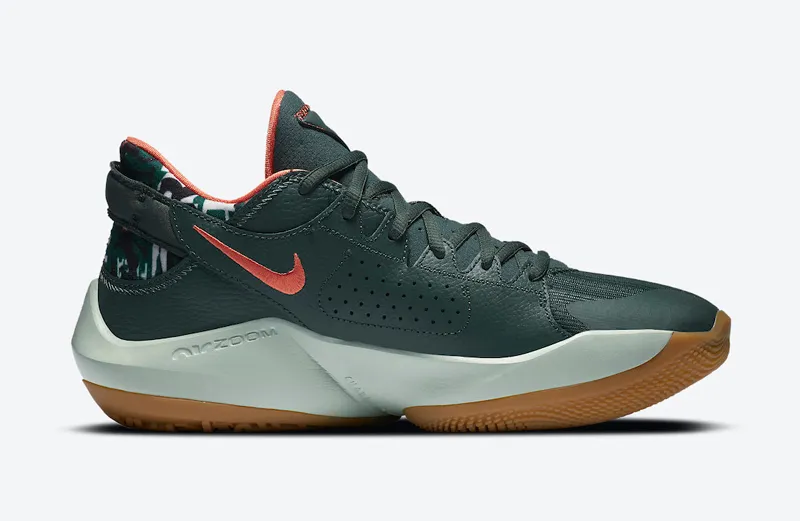 Le 18 septembre, c’est dans une nuance sombre que la Zoom Freak 2 se présentera. Une virgule à l’imprimé camouflage composé de lettres apporte un peu de vie à l’ensemble. On retrouve ce motif sur le talon.