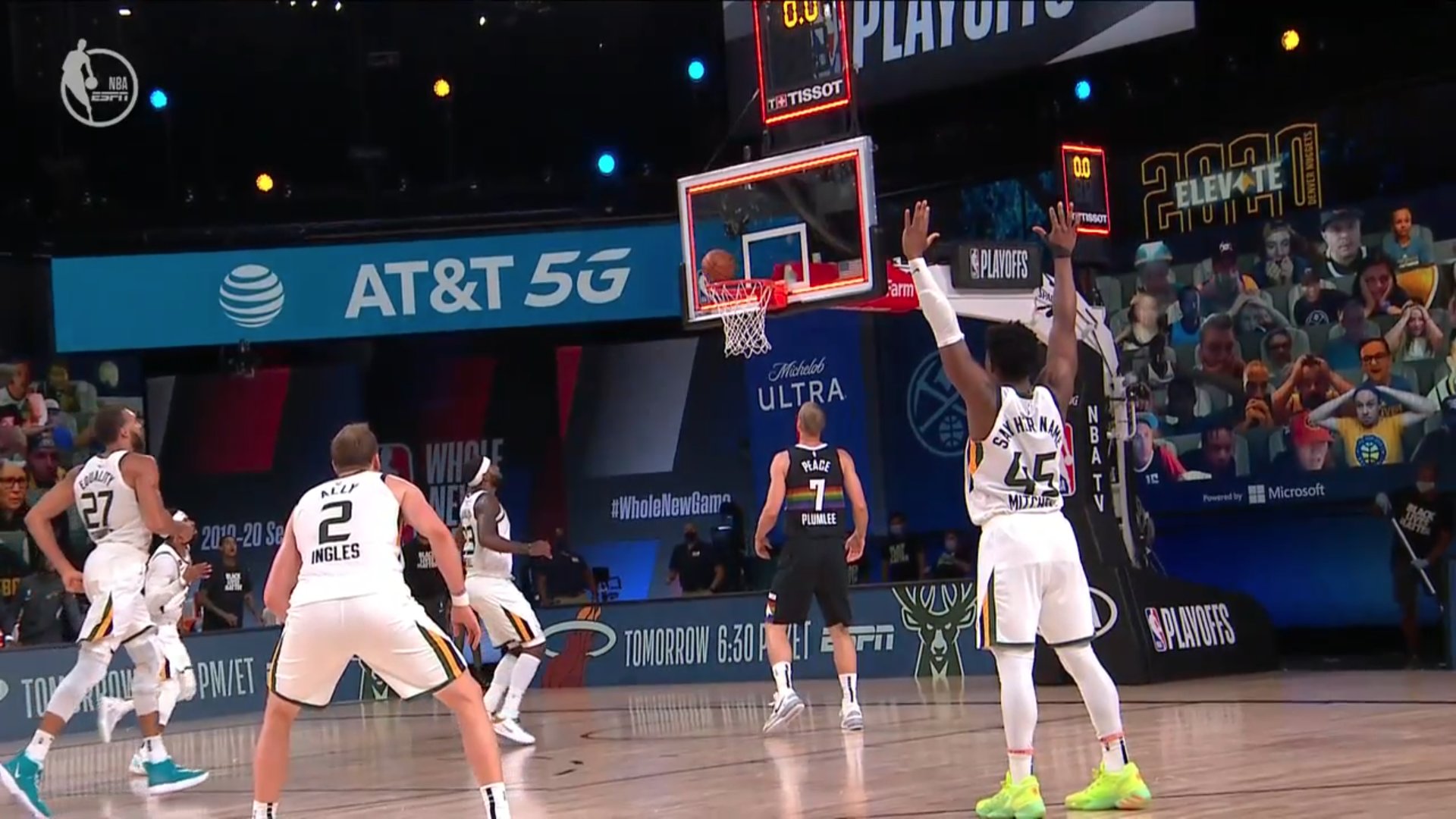 C’est Donovan Mitchell qui hérite de la balle d’égalisation avec 17 secondes à jouer mais la défense agressive de Gary Harris provoque la perte de balle de l’arrière du Jazz. Les Nuggets décident alors de pousser la balle en contre-attaque plutôt que de faire défiler le chrono et Torrey Craig part même au lay-up, mais il rate ! Rudy Gobert s’empare du rebond et passe la balle à Mike Conley qui voit son tir au buzzer faire gamelle. Denver rejoint les Clippers, et le Jazz sort de la bulle avec des bagages pleins de regrets.
