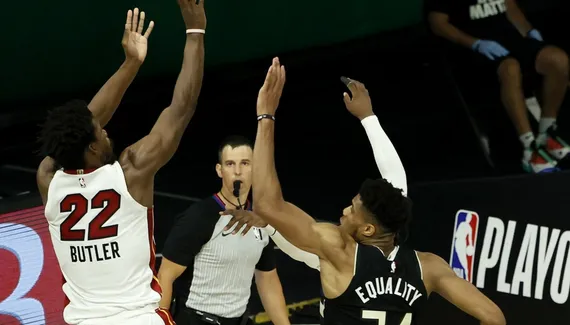 Ce n'est arrivé que trois fois dans l'histoire des playoffs : une victoire acquise sur des lancers avec zéro seconde au chrono. Cette nuit, Jimmy Butler s'est retrouvé sur la ligne, seul, avec personne autour de lui pour aller au rebond. Sous le panneau, Giannis Antetokounmpo est dépité. C'est lui, par une faute après le tir, qui l'a envoyé sur la ligne. Le Grec a bien essayé d'éviter Jimmy Butler sur sa réception, mais il le touche, et la vidéo confortera les arbitres dans leur décision.