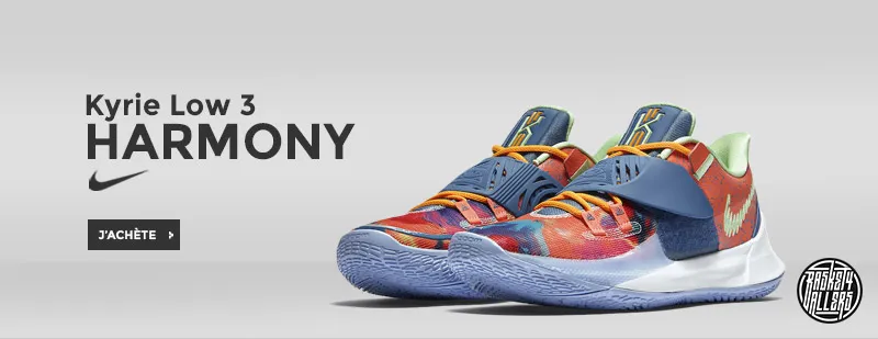 Procurez-vous maintenant sur Basket4Ballers.com les Nike Kyrie Low 3 “Harmony” concues pour la capacité de Kyrie Irving à s'arrêter, à reprendre sa course et à changer de direction avec le ballon et qui offrent une agilité, un amorti et une adhérence maximum sur le terrain.