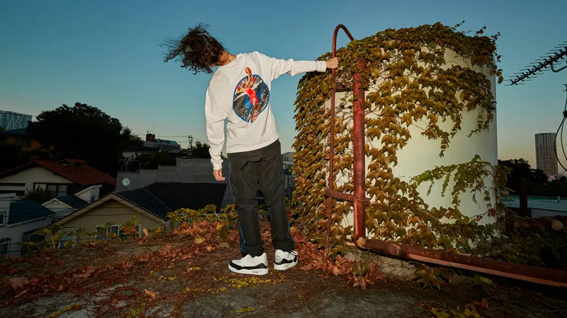 En attendant, le 17 septembre, une belle Air Jordan 3, réinterprétée de manière très simple en noir et blanc, sera disponible. Elle sera accompagnée d’une collection textile qui joue à fond la carte de la nostalgie des années 80 et 90. Nylon et grandes photos sont au menu.