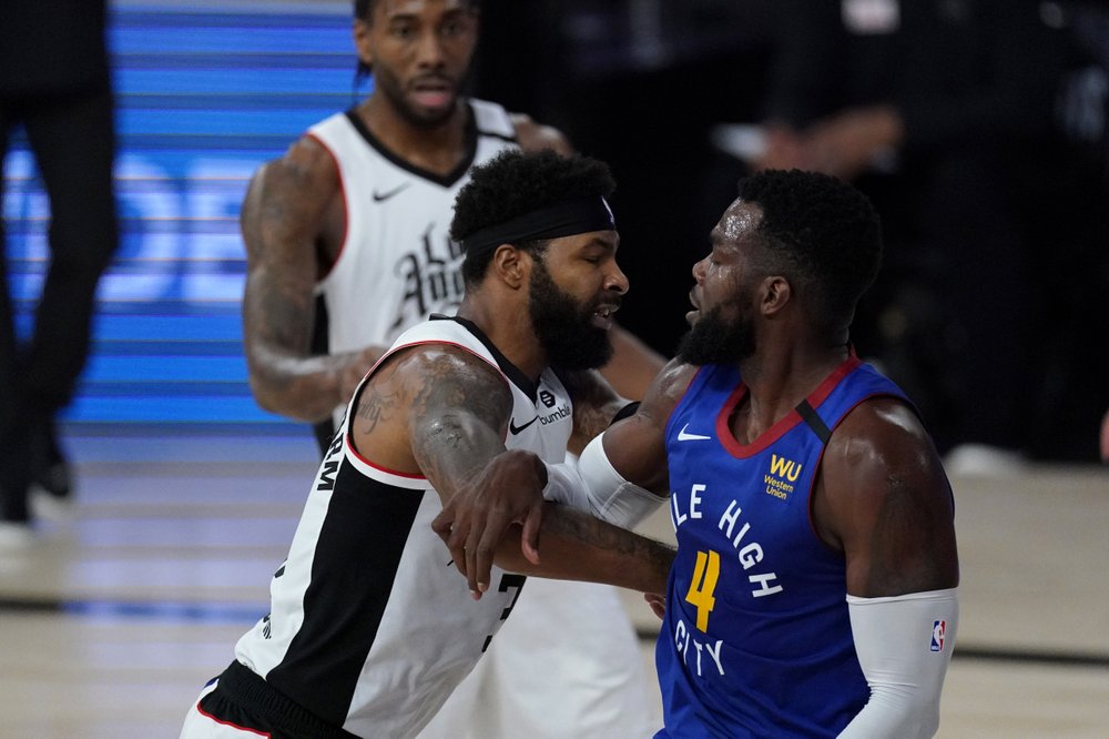Dans les dernières secondes de la fin de première mi-temps, sur un duel au rebond avec Marcus Morris, l’intérieur des Nuggets a joué des coudes et n’a pas reculé face aux coups du Clipper, ni à sa provocation verbale ensuite.