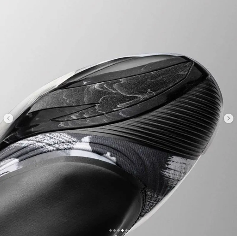 La lacets sont encore une fois recouverts par un large velcro, même si ce dernier ne remonte pas aussi haut que l’an dernier. De loin, on pourrait presque la confondre avec la Air Jordan XX.