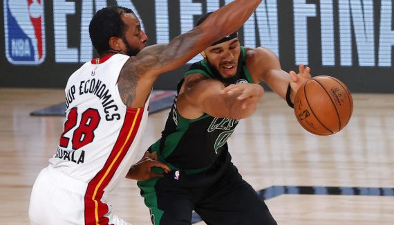 Comme l’explique Gibson Pyper, l’attaque de Boston repose sur les lancements de de Kemba Walker et Jayson Tatum dans l’axe du terrain, et avec ses joueurs en zone 2-3 (un premier rideau de deux joueurs, avec un deuxième rideau de trois joueurs derrière), Erik Spoelstra perturbe cette rampe de lancement. Surtout que ce sont les deux extérieurs les plus athlétiques (Jimmy Butler, Jae Crowder ou Derrick Jones Jr) qui constituent le premier rideau.