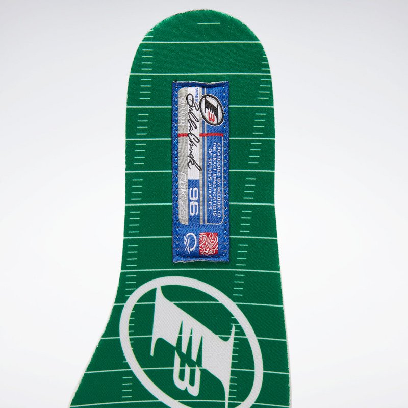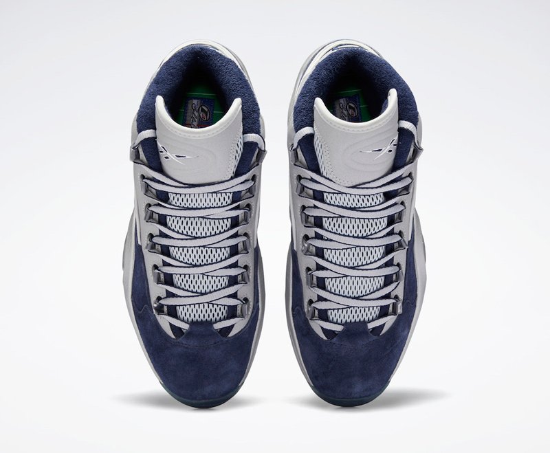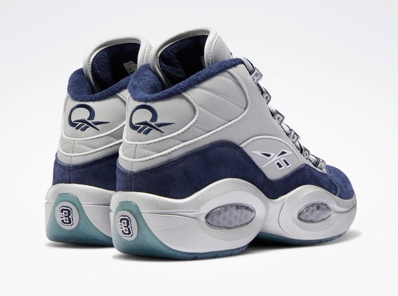Le nouveau coloris de la Question est donc plus que jamais ancré dans l’année 96. On y retrouve la traditionnelle combinaison bleu/gris/blanc des Cowboys. Le petit détail soigné, c’est la semelle intérieure décorée par un terrain de football américain. La semelle externe est translucide. Au talon, on retrouve le numéro 3 d’Iverson, lui-même quarterback lors de son passage au lycée.
