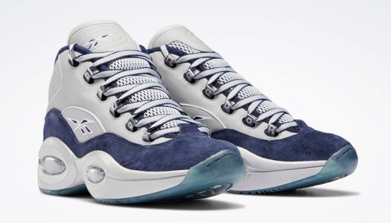 Le nouveau coloris de la Question est donc plus que jamais ancré dans l’année 96. On y retrouve la traditionnelle combinaison bleu/gris/blanc des Cowboys. Le petit détail soigné, c’est la semelle intérieure décorée par un terrain de football américain. La semelle externe est translucide. Au talon, on retrouve le numéro 3 d’Iverson, lui-même quarterback lors de son passage au lycée.