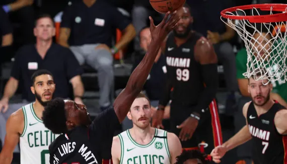 Boston enchaîne les tirs à 3-points sans en rentrer un seul alors que les joueurs du Heat marquent sur chaque possession : Miami à 14 points d'avance à 2 minutes 30 de la fin ! Et quand Brown marque avec la faute, Robinson lui répond de loin. Le Heat a pris feu, les Celtics ont pris l'eau, les Finals 2020 opposeront Los Angeles à Miami.