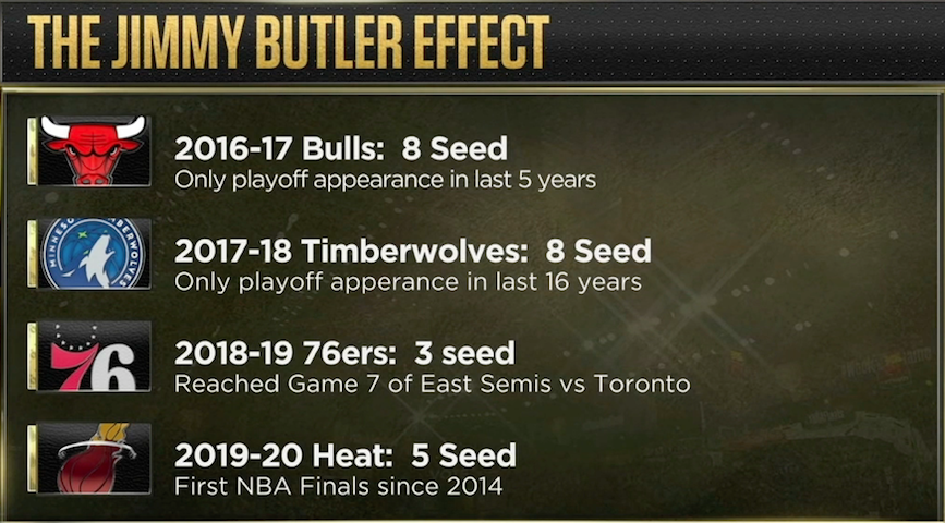 N’empêche, les candidats ne manquent pas au portillon de l’ailier All Star. Durant le fol été 2019, Jimmy Butler fait partie des gros poissons.
