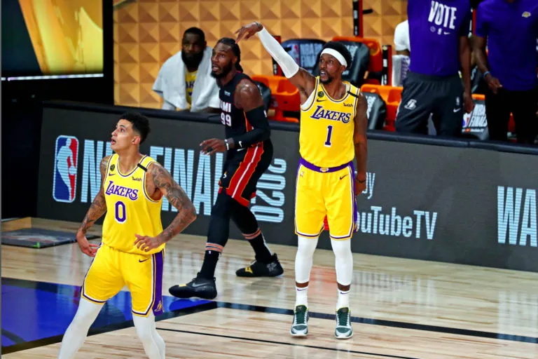 /https%3A%2F%2Fwww.basketusa.com%2Fapp%2Fuploads%2F2020%2F10%2Fkcp-finals.jpg) Jusque-là, le monstre à deux têtes des Lakers permettait de combler, voire masquer, les faillites de certains de leurs coéquipiers. Mais la nuit dernière, comme Anthony Davis était plombé par les fautes, et que LeBron James était dominé par Jimmy Butler, Frank Vogel a espéré, en vain, qu'un shooteur mette dedans, et plus particulièrement les deux titulaires, Danny Green et Kentavious Caldwell-Pope.