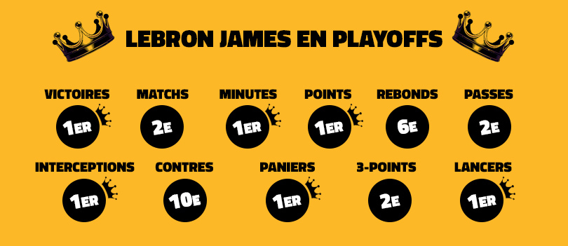 Tranquillement, LeBron James continue son ascension dans les différents classements des statistiques en playoffs.