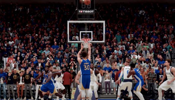 Par défaut, à nouveau, l’IA se charge de définir l’endroit où le double-pas est le plus dégagé pour aller au bout, mais on peut aussi prendre la main avec la système de commandes Pro. 2K promet aussi des mouvements plus réalistes comme l’Eurostep ou des floaters. Le tout avec des finitions moins casse-croûte où le joueur termine sur le socle du panier, à moitié désarticulé.