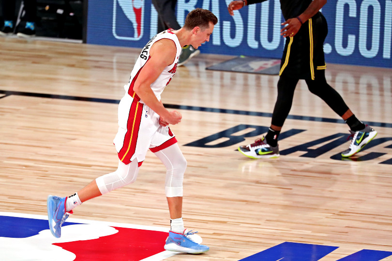 Surveillé comme du lait sur le feu par Kentavious Caldwell-Pope et les autres défenseurs des Lakers, qui ne lui laissent aucun espace, le shooteur était discret depuis le début des Finals (0, 9, 13 et 17 points à 8/26 de loin lors des quatre premiers matchs). Los Angeles ayant décidé de le coller à tout prix, il avait fini par surtout tenter de libérer ses coéquipiers, agissant comme un aimant. Mais Jimmy Butler ne voulait pas qu’il change son jeu.