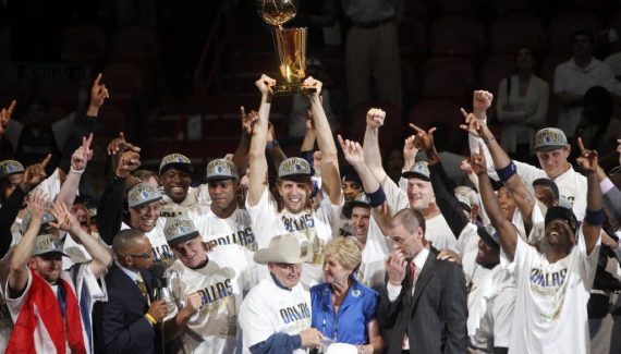 Michael Jordan qui s’accroche au ballon par terre, Kobe Bryant debout sur la table de marque, Kevin Garnett et son « anything is possible », LeBron James et Kevin Love qui s’étreignent : ces instants de purs bonheur sont ancrés dans la légende du basket. Ce moment, Dirk Nowitzki voulait le vivre seul en 2011.