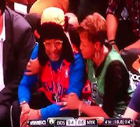 Brent Barry, sur le plateau de NBA TV, demande à Glen Davis ce qu’il a pensé de la chapka rouge et noire de Spike Lee, qui a passé la rencontre aux côtés de la maman de Ray Allen.