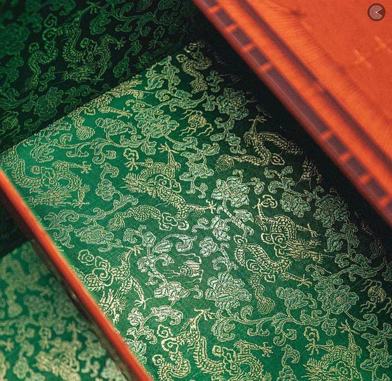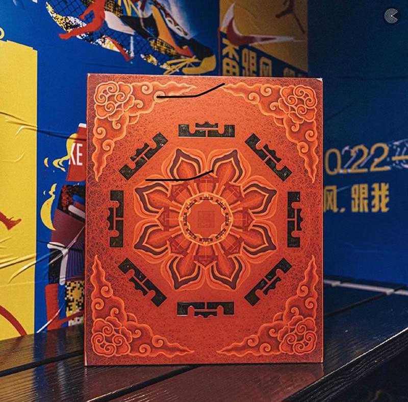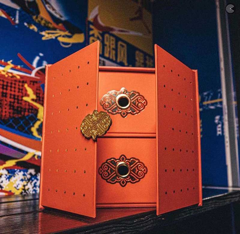 Les deux chaussures sont réunies dans un coffret superbement décoré, à l’extérieur comme à l’intérieur.