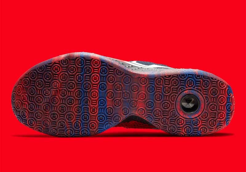 Un oubli qui sera corrigé le 1er novembre, avec une déclinaison très réussie, qui s’appuie sur une empeigne bleue sur l’extérieur et rouge à l’intérieur. L’utilisation de deux nuances de bleu dans le textile apporte un petit supplément de caractère au résultat.