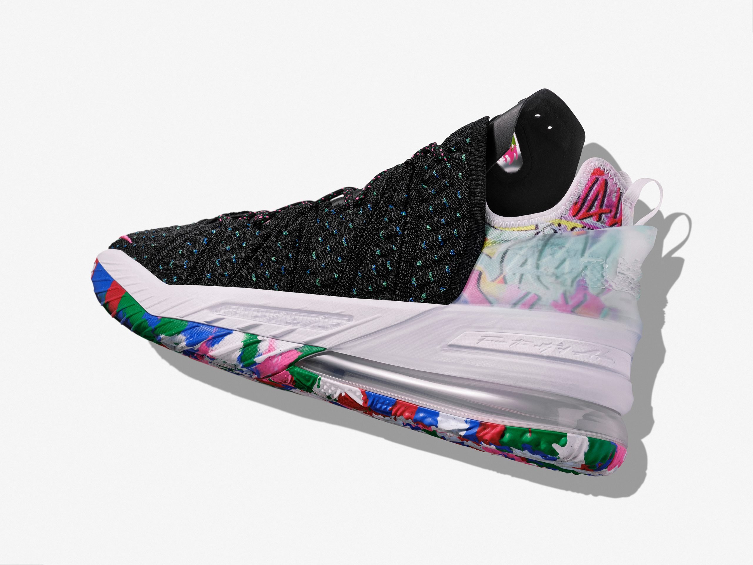 Les matériaux autant que les coloris sont audacieux et de qualité – on pense à ces petites poches d’Air sur la languette qui font leur effet. Nike et LeBron James ont réfléchi sur la partie technique mais aussi sur le design (qui est plus fin) de cette LeBron 18 qui fait partie des plus belles de la gamme.