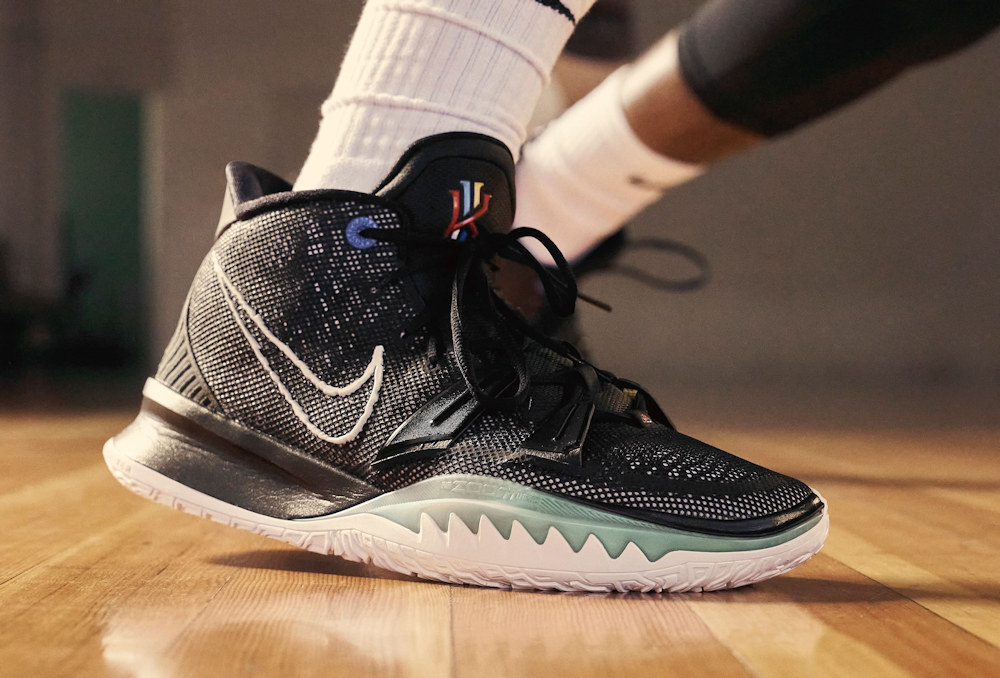 Le secret était plutôt bien gardé puisqu’il y avait très peu de fuites sur ce modèle, mais voici le Kyrie 7, la 7e chaussure signature du meneur des Nets. Nike annonce la couleur puisqu’il s’agit d’un modèle dédié aux “créateurs” qu’il s’agisse de faire tomber des défenseurs ou… les records.