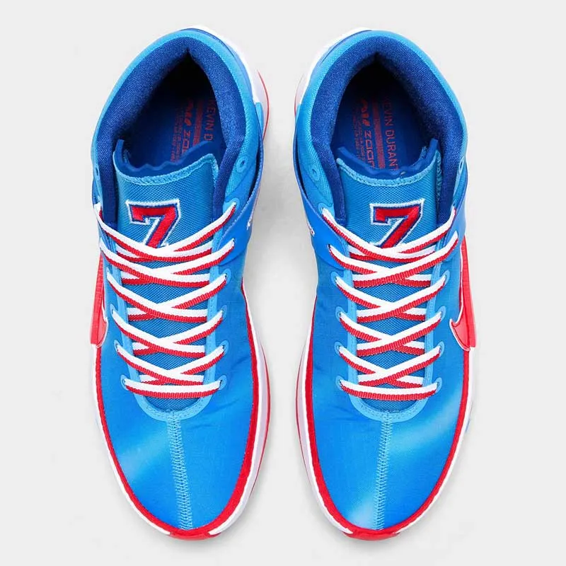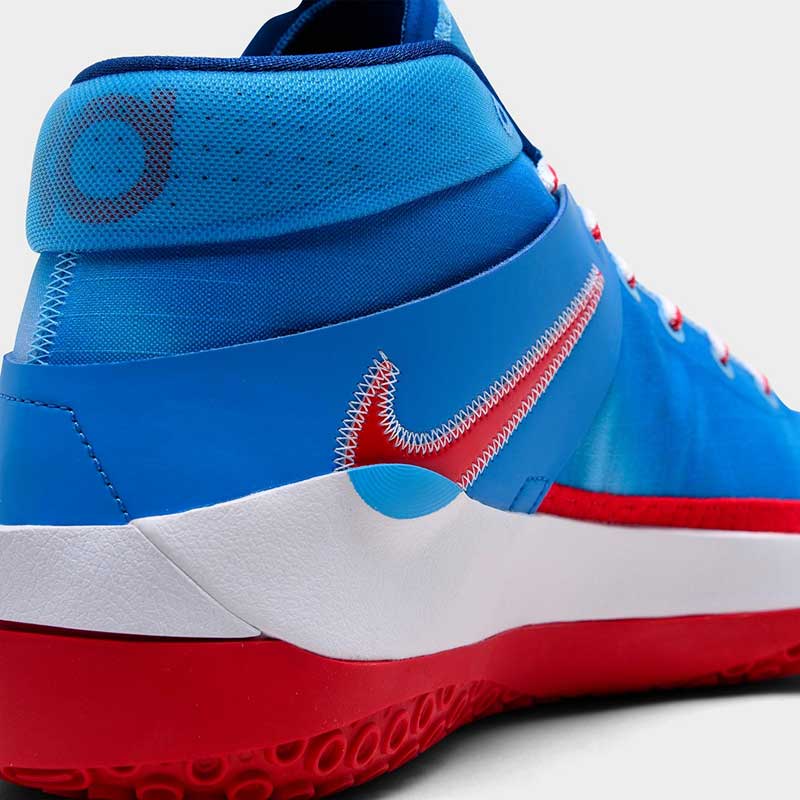 Quelques jours après la présentation des maillots “Classic Edition” que porteront les Nets en 2020-21, Kevin Durant est déjà prêt. Le numéro 7 pourra porter une superbe KD13 qui reprend exactement le même motif bleu légèrement décoloré, avec des accents rouges.