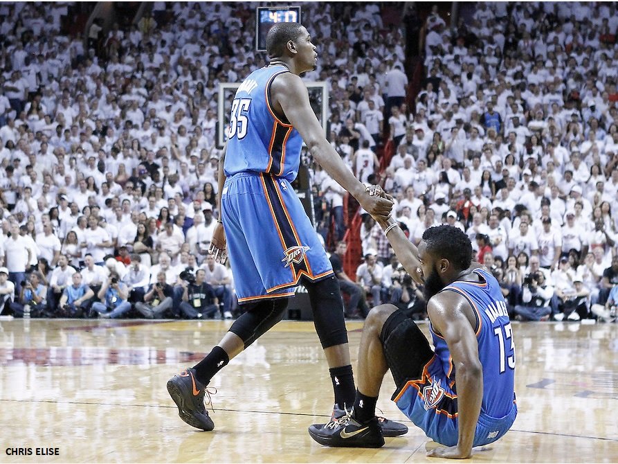 Dans la foulée de cette fin de saison 2012/13, et pour faire de nouvelles économies, Kevin Martin n’est pas prolongé par OKC. Grâce au talent de sa paire Durant/Westbrook, Oklahoma City restera compétitif jusqu’à l’apogée —qui est aussi un raté— de 2016 : avance de 3-1 gâchée contre les Warriors en finale de conférence, qui précipitera le départ de “KD”.
