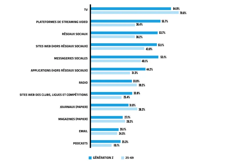 “L'offre est très compliquée à définir parce qu'ils sont exigeants mais ils ont un mode de consommation très particulier”, indique Romane Zeli, qui travaille justement sur la Génération Z pour SPORSORA. “Ils “scrollent” donc ils ne restent pas sur une page, ils ne restent pas sur une vidéo très longtemps donc c'est très compliqué d'avoir leur attention en continu donc pour faire le contenu d'un média, d'un match ou d'un évènement sportif qui va durer au moins 1h30, ce n'est pas simple. Il faut faire le pari de les attirer sur une partie et pas seulement sur tout l'évènement. Peut-être que cette génération évoluera plus tard pour se concentrer plus longtemps. Mais il reste les générations d'avant et peut-être celle d'après, qui sera peut-être plus facile à atteindre. Après, la Gen Z est importante parce que ce sont de très grands prescripteurs. Même s'ils ne regardent que les highlights, ils vont les partager, ils vont en parler, ils vont les reposter et en terme de prescription, c'est très important.”