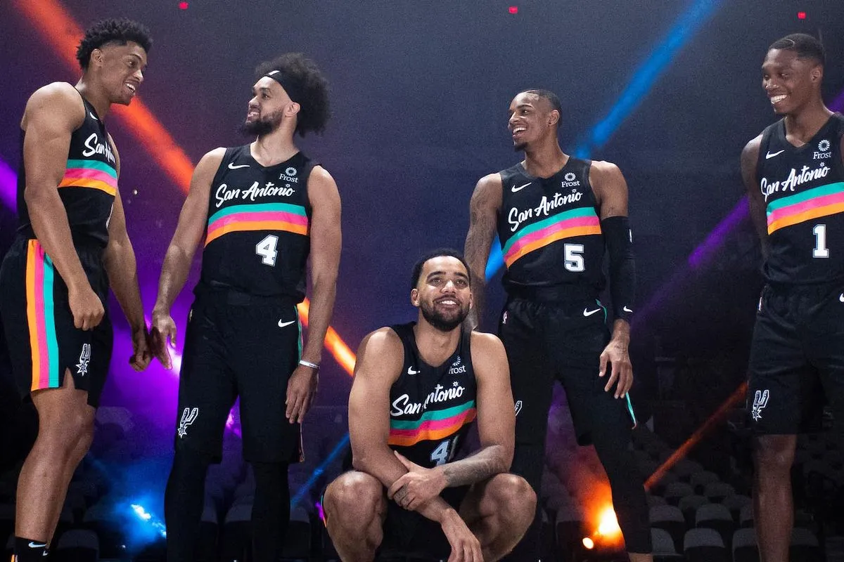 Ces couleurs « Fiesta » rendent d'une part hommage aux Spurs des années 1990, dont le logo et les tenues d'échauffement reprenaient justement les couleurs que l'on retrouve sur ce maillot. Dans le même temps, la franchise met à l'honneur les influences hispaniques et culturelles de la ville de San Antonio. En effet, depuis 1891, celle-ci organise annuellement son festival « Fiesta », un événement phare de la région.