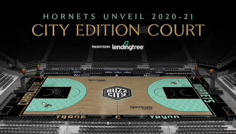 L’identité « City Edition » 2020-2021 des Hornets rend hommage à la ruée vers l’or de Charlotte, en ajoutant du doré et du noir à du vert menthe. Un choix que l’on retrouve sur les maillots mais aussi le parquet qui sera posé au Spectrum Center pour les soirées dédiées.