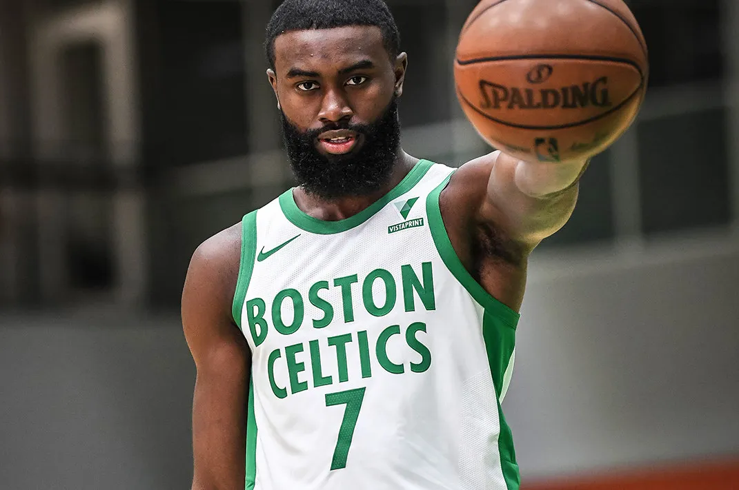 Sur le maillot, on retrouve ainsi les inscriptions Boston et Celtics, et c'est une première pour la franchise dont le maillot principal n'a quasiment jamais évolué dans l'histoire. On trouve aussi un patch doré avec le nombre 17, et une citation de Red Auerbach : “Les Celtics ne sont pas une équipe de basket, c'est une manière de vivre.”