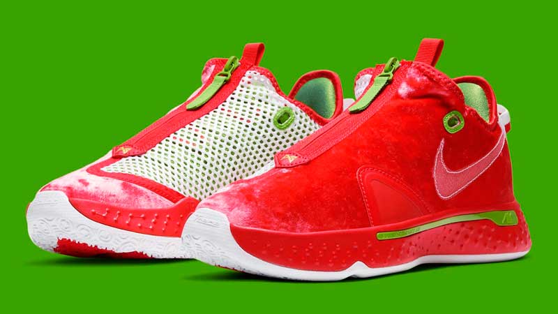 La PG4 sera donc décorée d’un coloris façon Père Noël. Le petit détail qui fait la différence, c’est un blanc distillé de manière aléatoire sur l’empeigne, histoire de donner l’impression que l’ailier des Clippers revient d’une balade dans la neige.