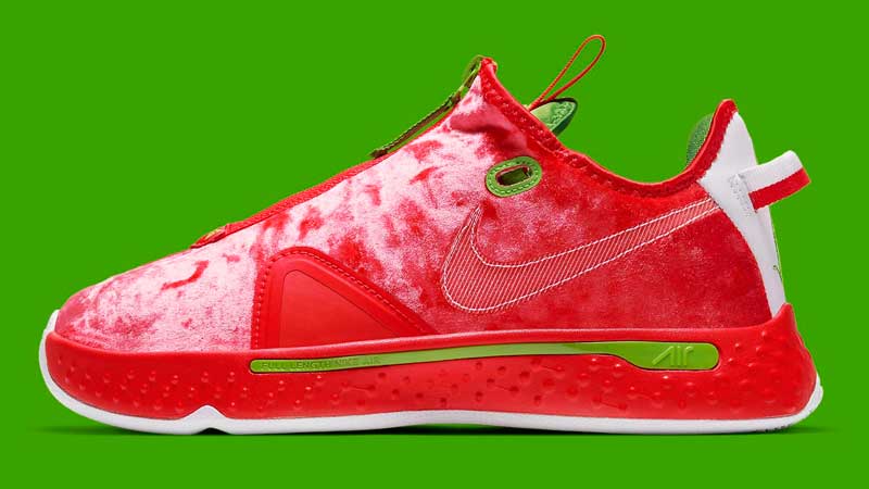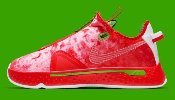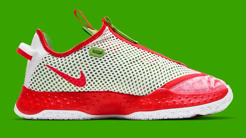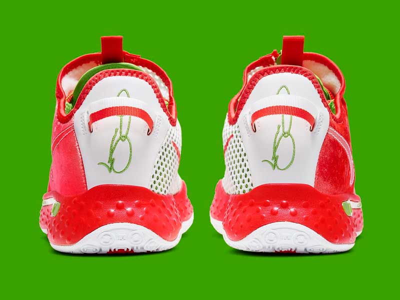 La PG4 sera donc décorée d’un coloris façon Père Noël. Le petit détail qui fait la différence, c’est un blanc distillé de manière aléatoire sur l’empeigne, histoire de donner l’impression que l’ailier des Clippers revient d’une balade dans la neige.