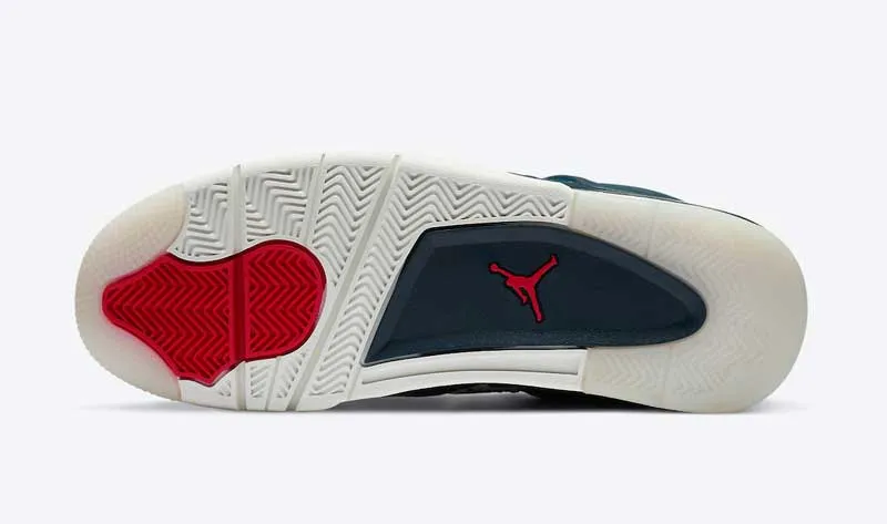 C'est peut-être pour raccommoder son manque d'idées que Jordan Brand a eu l'idée de recourir au Sashiko pour la Air Jordan 4. Le résultat est superbe, avec une paire dépareillée qui joue sur les touches de bleu et de rouge.
