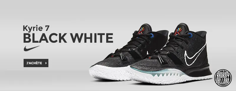 Procurez-vous maintenant sur Basket4Ballers.com la Nike Kyrie 7 “BK Black” et modelez votre jeu avec créativité et performance avec la grande unité Zoom Air courbée à l'avant-pied pensée pour se plier dans plusieurs directions et ainsi fournir un retour d'énergie pour une performance optimale.