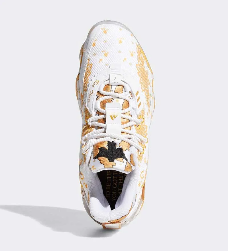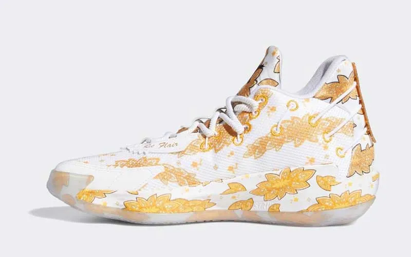 Adidas a décidé de mettre le catcheur retraité à l'honneur avec une chaussure très tape à l'oeil. La silhouette de Flair est présente sur la languette du pied droit, tandis que ses initiales sont placées sur le talon.