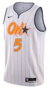 Le Magic voulait faire un clin d’oeil à une des périodes phares de son histoire, ses origines à vrai-dire, avec les rayures et l’étoile dans le nom sur le poitrail. Mais c’est la couleur orange qui fait tout foirer. Dans le Nord de la Floride, région connue pour sa production d’agrumes, Orlando voulait tenter un coup. Pour moi, c’est raté ! J’ai déjà mal pour Evan Fournier et ses coéquipiers qui vont devoir parader avec cet ensemble, drôle de mélange entre un pyjama rayé et une tenue de taulard…
